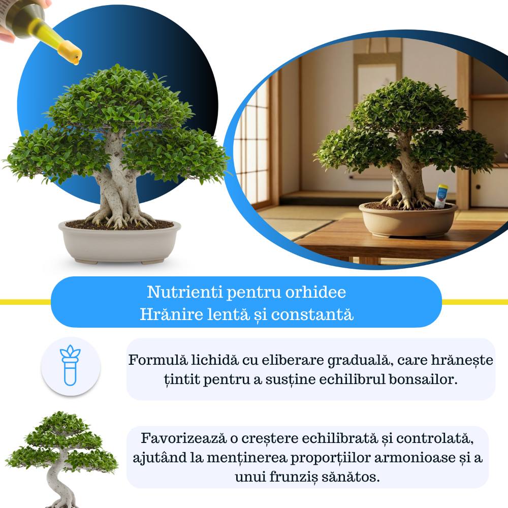 Conținutul pachetului: 1 x Tratament pentru bonsai, efect de durată 15+ zile, 35 ml.