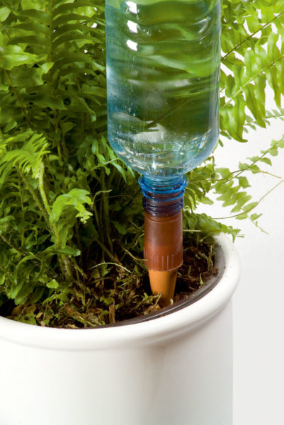 Sistemul automat de irigare Blumat este ideal pentru ghivece si gradini. Perfect pentru utilizarea in perioadele de absenta, vacanta, dar si pe tot parcursul anului. Datorita unei msuratori naturale a umiditatii solului, elibereaza cantitatea potrivita de apa prin varful special din pamant. MOD DE UTILIZARE: 1. Se aplica adaptorul irigator direct pe sticla. 2. Se taie fundul sticlei daca doriti sa realimentati cu apa! 2. Se da o simpla gaura in fundul sticlei daca nu doriti realimentarea periodica cu apa a sticlei. 3. Se fixeaza in ghiveci sau in gradina. 4. Cand se goleste se poate realimenta, aceeasi sticla prin fundul deja decupat. Compatibil cu toate sticlele de plastic de la 0,25 la 2.5 L de pe piata. Pachet de 1 bucata.