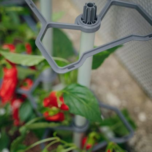 Ghiveciul nostru inovator pentru ardei iute face ca plantarea de ardei iute si ardei sa fie o joaca de copii. Sistemul de catarare inclus, cu tuburi din aluminiu de inalta calitate si doua cadre robuste, este perfect adaptat la nevoile plantelor de ardei iute. Plantele gasesc un sprijin optim in spalier si cresc intotdeauna uniform spre soare langa tuburile de aluminiu. Curelele de udare integrate conecteaza ghiveciul cu rezervorul de apa si, astfel, alimenteaza automat plantele cu apa. Datorita dimensiunii special adaptate a rezervorului de apa CHARLY CHILI, acesta trebuie umplut cu apa doar la cateva zile.