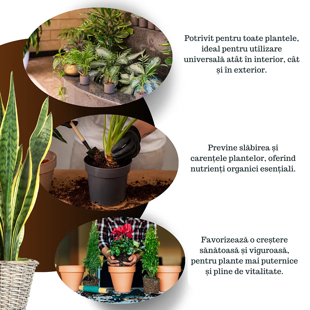 🚀 Creștere rapidă și sănătoasă: Amestecul organic este ușor asimilabil, susținând o dezvoltare rapidă, viguroasă și echilibrată.
